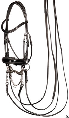 (00949)Jeho cena zahrnuje soupravu udidla a otěže. Rozměr: PLNÝ. Barvy: oříšková, hnědá a černá.