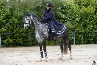 (AB00310)Pláštěnka z nylonu proti roztržení, s kapucí a zadním otvorem pro zakrytí sedla, odnímatelná kapuce a elastické popruhy pod stehnem