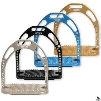 (180462)Tyto stylové třmeny mají anatomický design a jsou vyrobeny z hliníku., Třmeny jsou velmi bezpečné a poskytují jezdci stabilitu a optimální podporu., Tento model je vhodný zejména pro jumping a cross jezdce. Zubatá titanová část chodidla poskytuje vynikající přilnavost a rozšířená část chodidla (6,5 cm) poskytuje dodatečnou stabilitu šířka 12cm